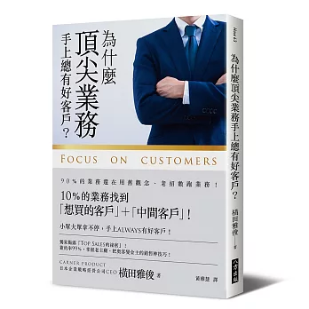 超級業務絕對成交-技術:6個驚人習慣力,讓你擁有「一出手就簽約」的特質![]() | 為什麼頂尖業務手上總有好客戶?![]() | 頂尖業務必備的主導式銷售力:九○%的客戶都不知道自己要什麼!6個方法,讓你在1小時內,快速成、交大量成交!![]() | 影響力:說服的六大武器,讓人在不知不覺中受擺佈【個案升級版】![]() | ||||